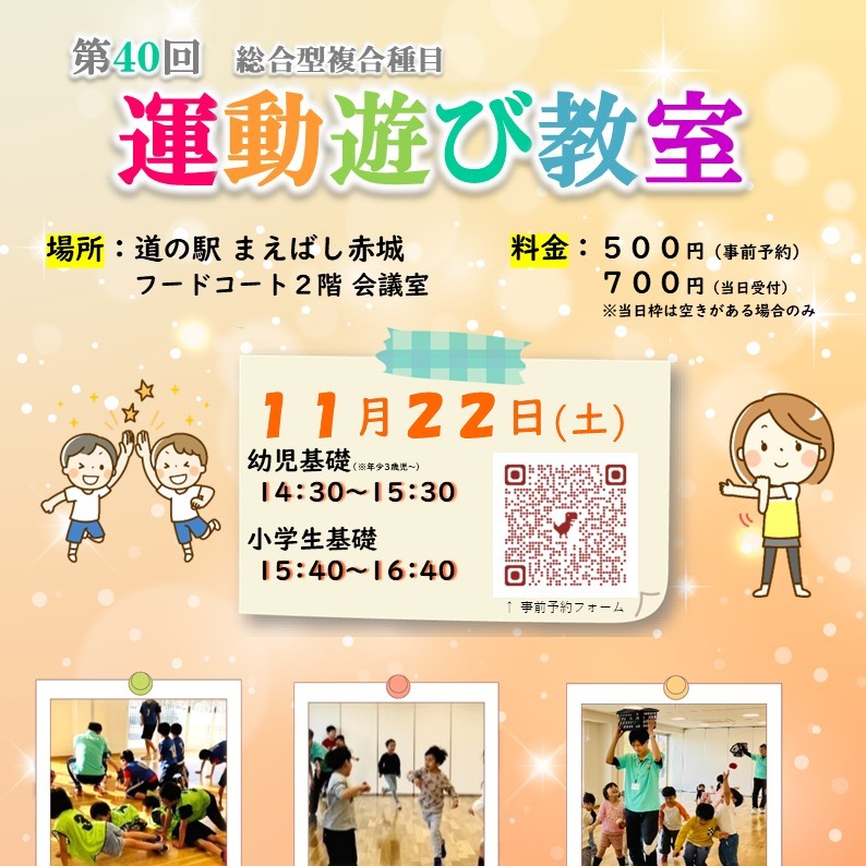好評の体操教室イベントが今月も開催されます! レクリエーションのようなワクワク楽しい運動遊びを体験できる『幼児基礎体操教室』『小学生基礎体操クラス』2本立で実施。 運動が苦手…という方でもご安心ください!幼児体育指導教員が優しく丁寧に教えてくれます!!
