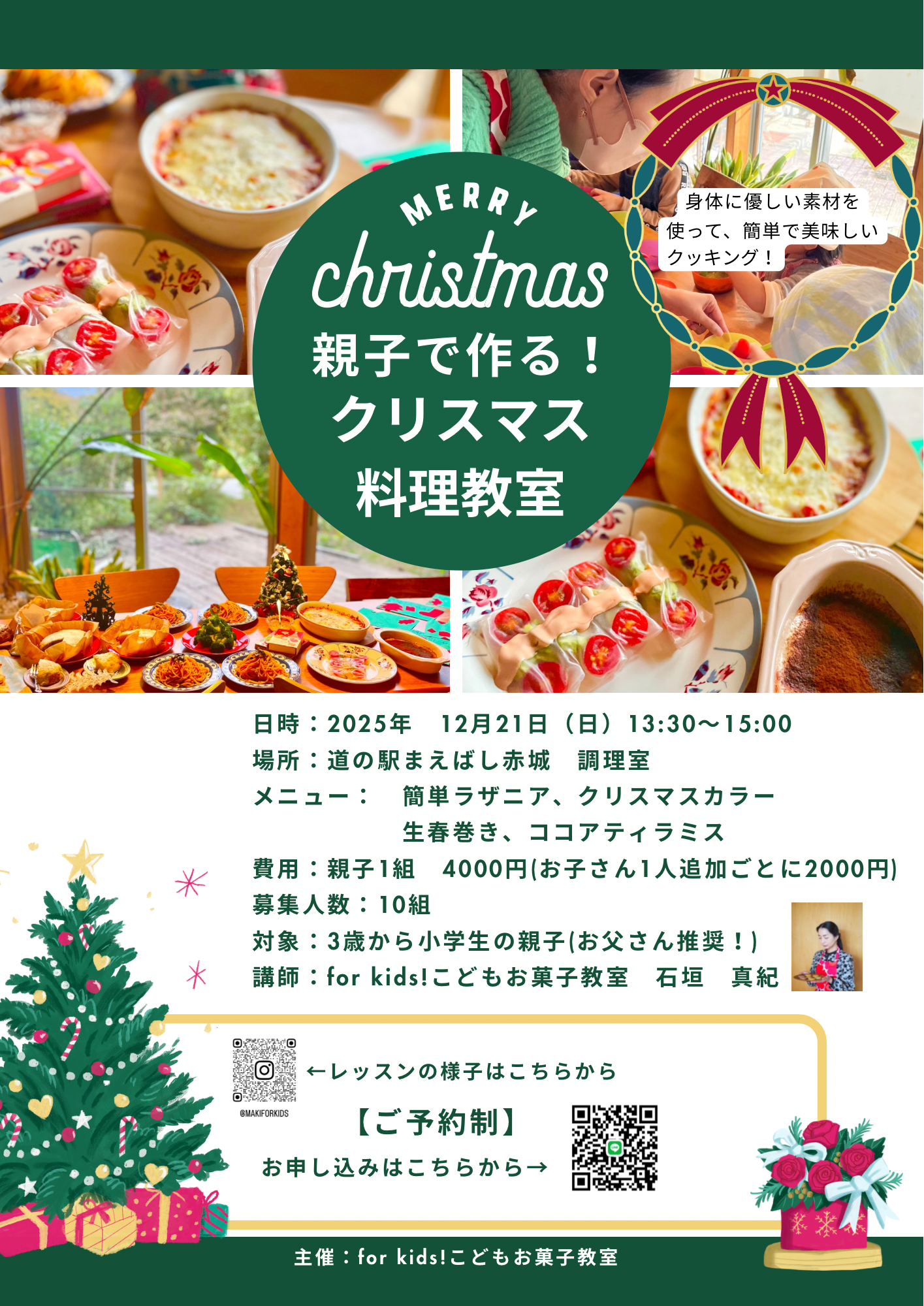 今回のテーマは「クリスマス!」。 簡単ラザニア、クリスマスカラー、生春巻き、ココアティラミスを作ろう!作ったお菓子は可愛くラッピングしてお持ち帰りしましょう♫
