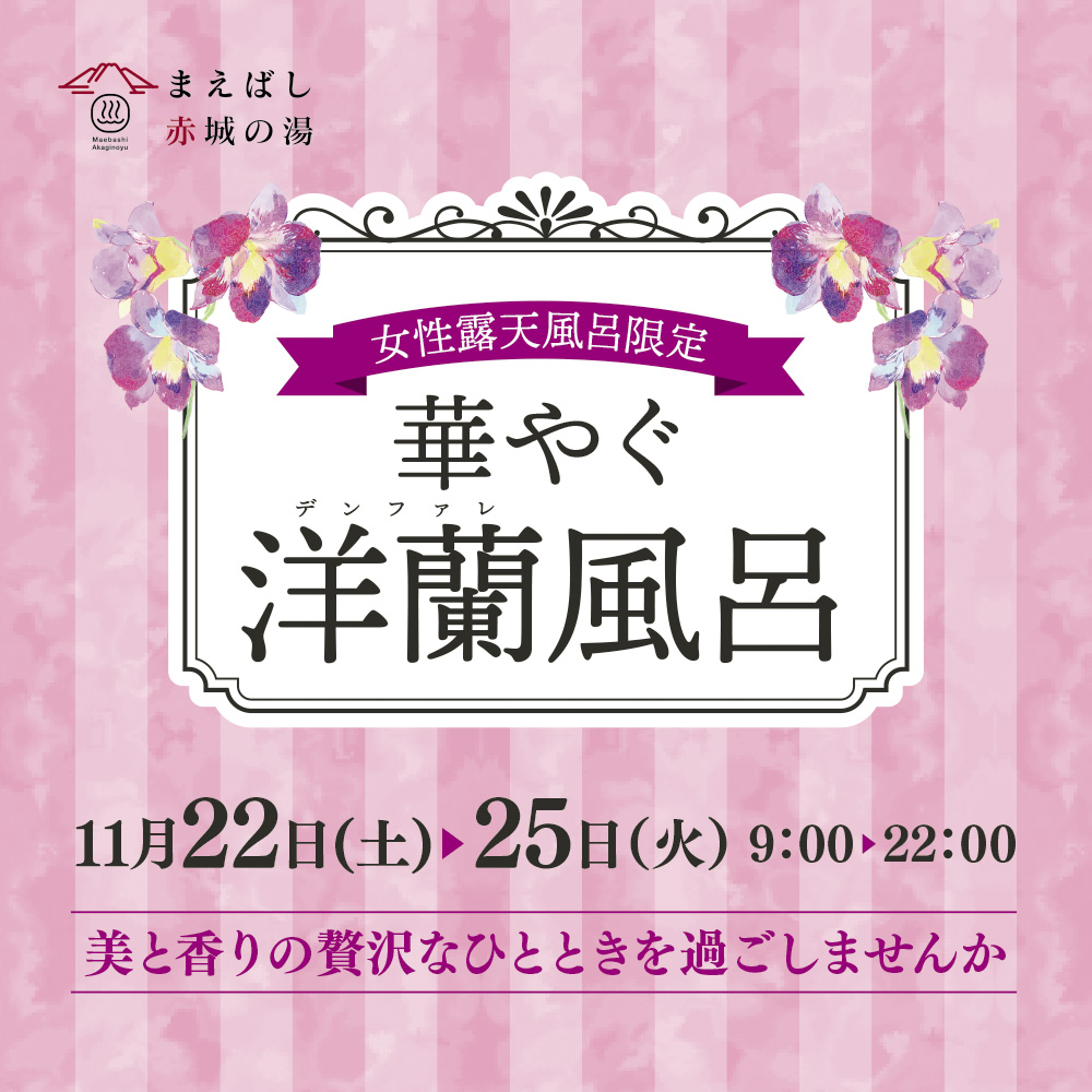 まえばし赤城の湯の女性露天風呂が、4日間限定で"デンファレ風呂"に大変身!