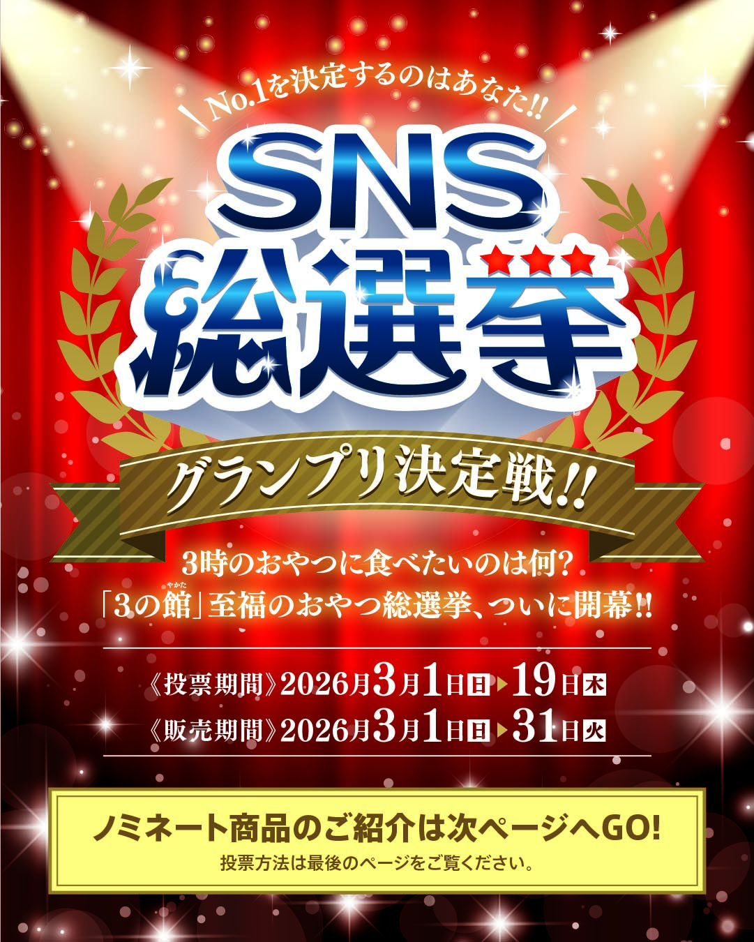内 容:「3時のおやつに食べたいのは何?」をテーマに各店舗がオリジナル商品を考案。どれがグランプリになるかはあなたの投票次第!SNSからお気に入りの商品へ投票し、豪華景品ゲットのチャンス!