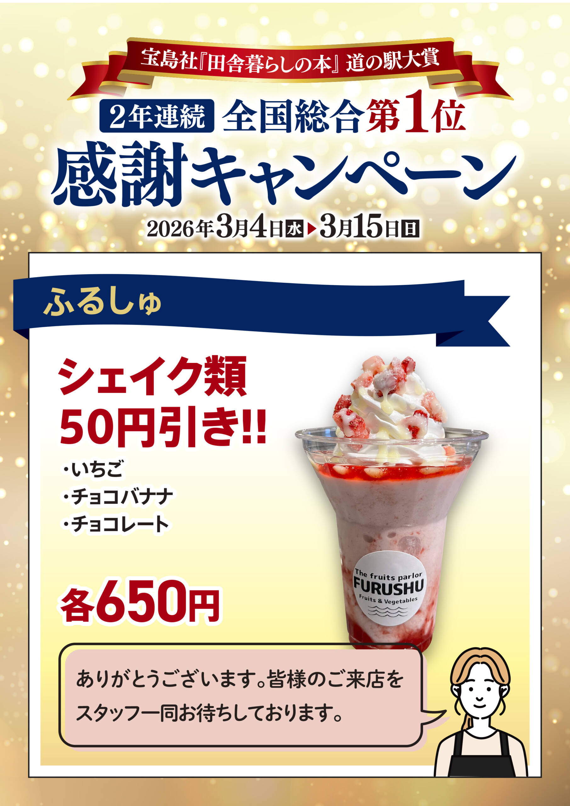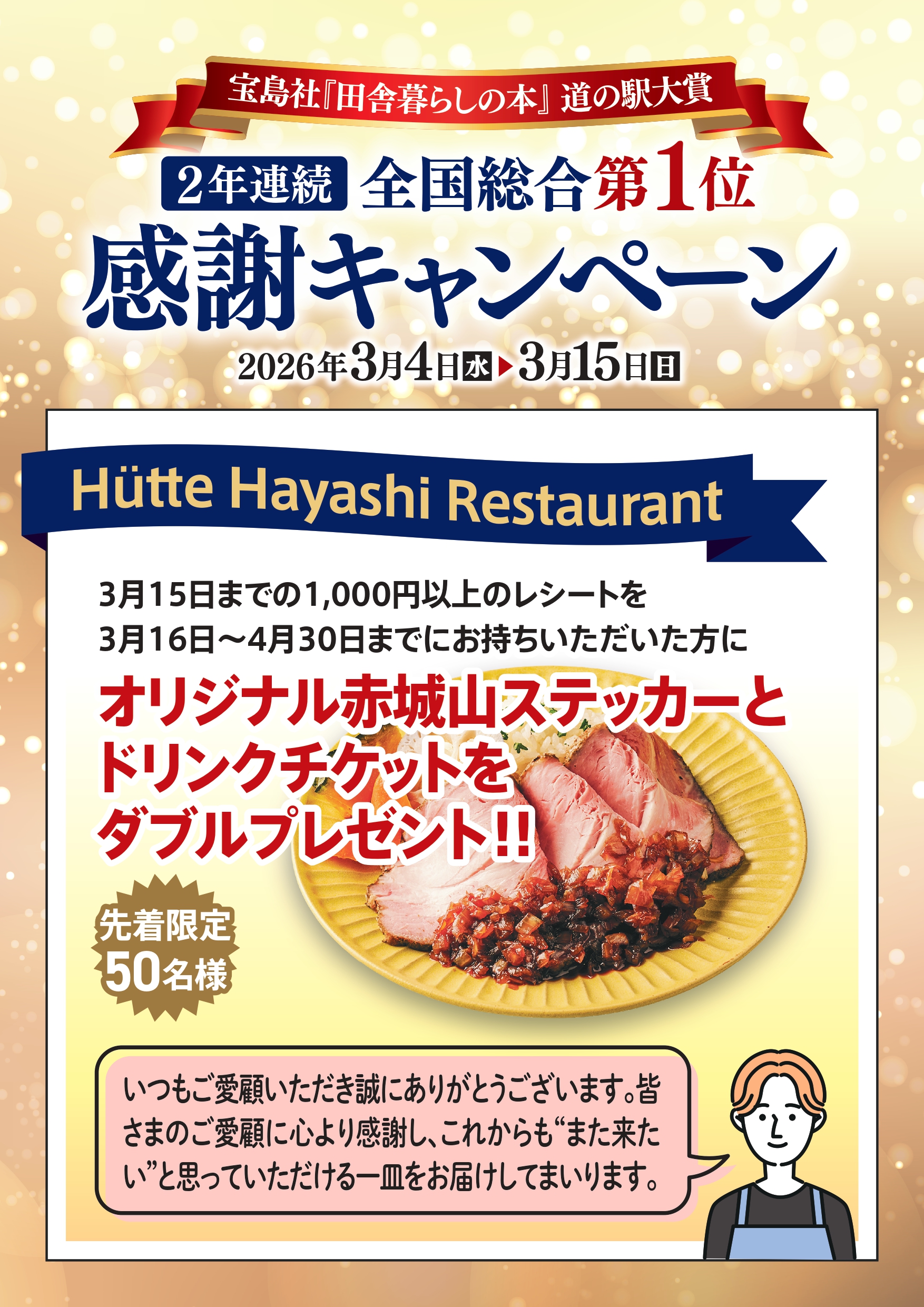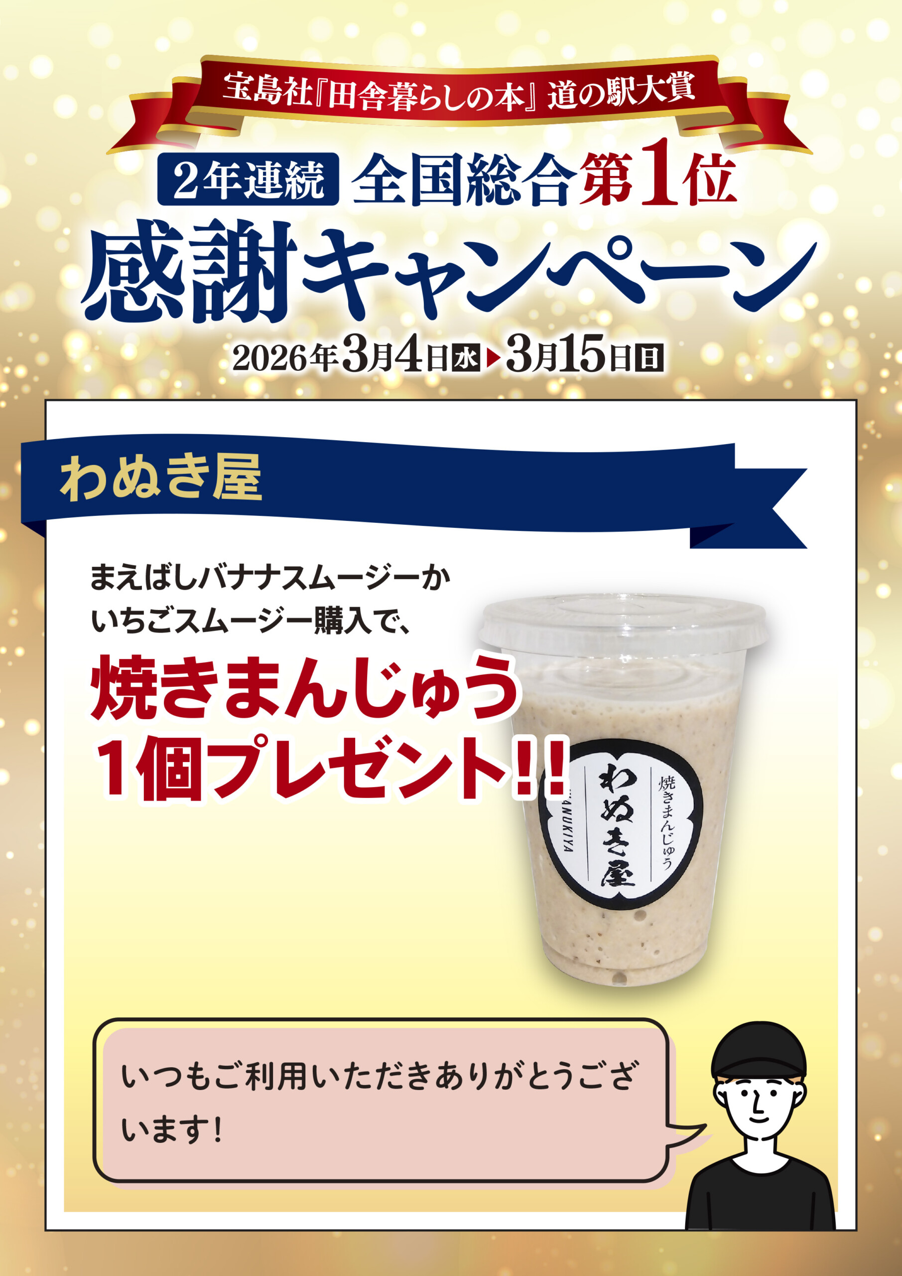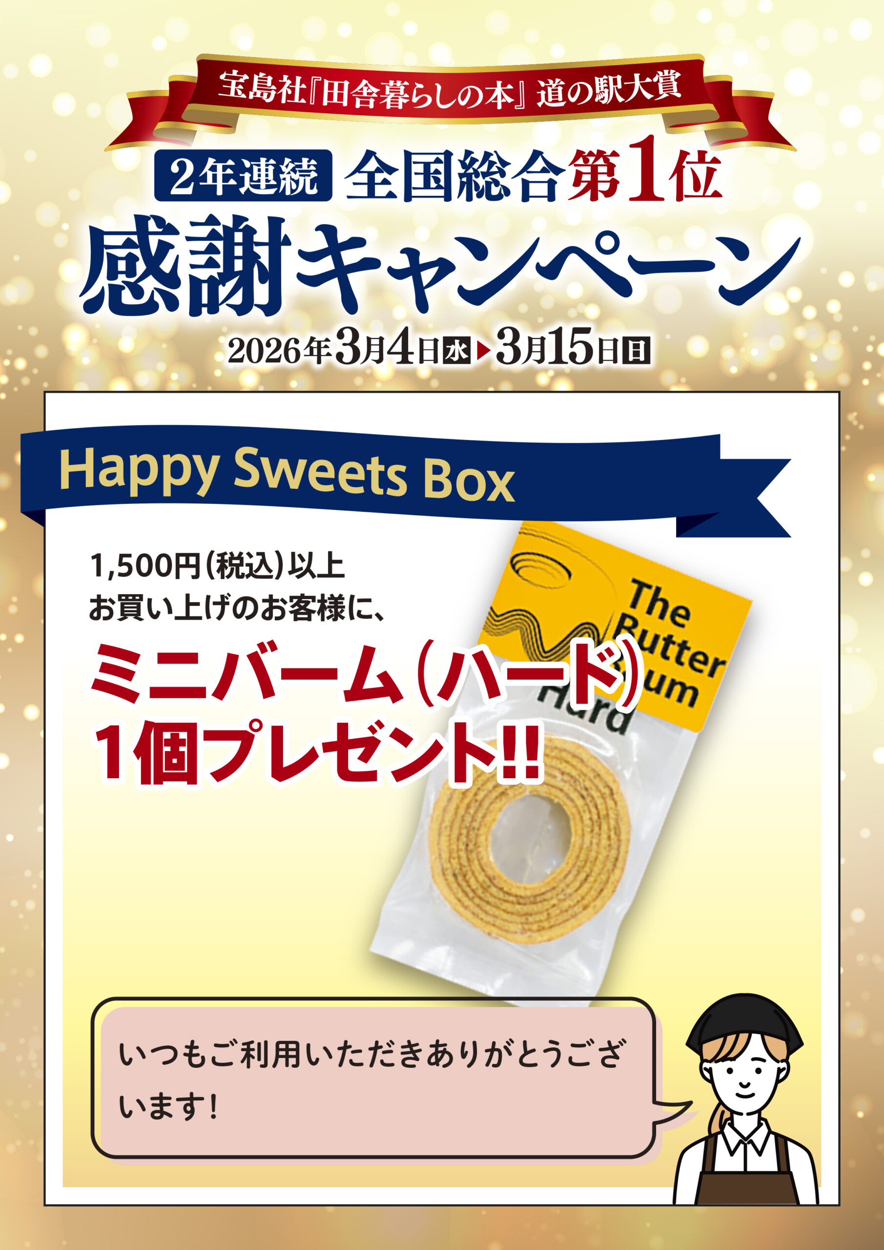 「田舎暮らしの本」道の駅大賞2年連続全国総合1位~感謝キャンペーン~