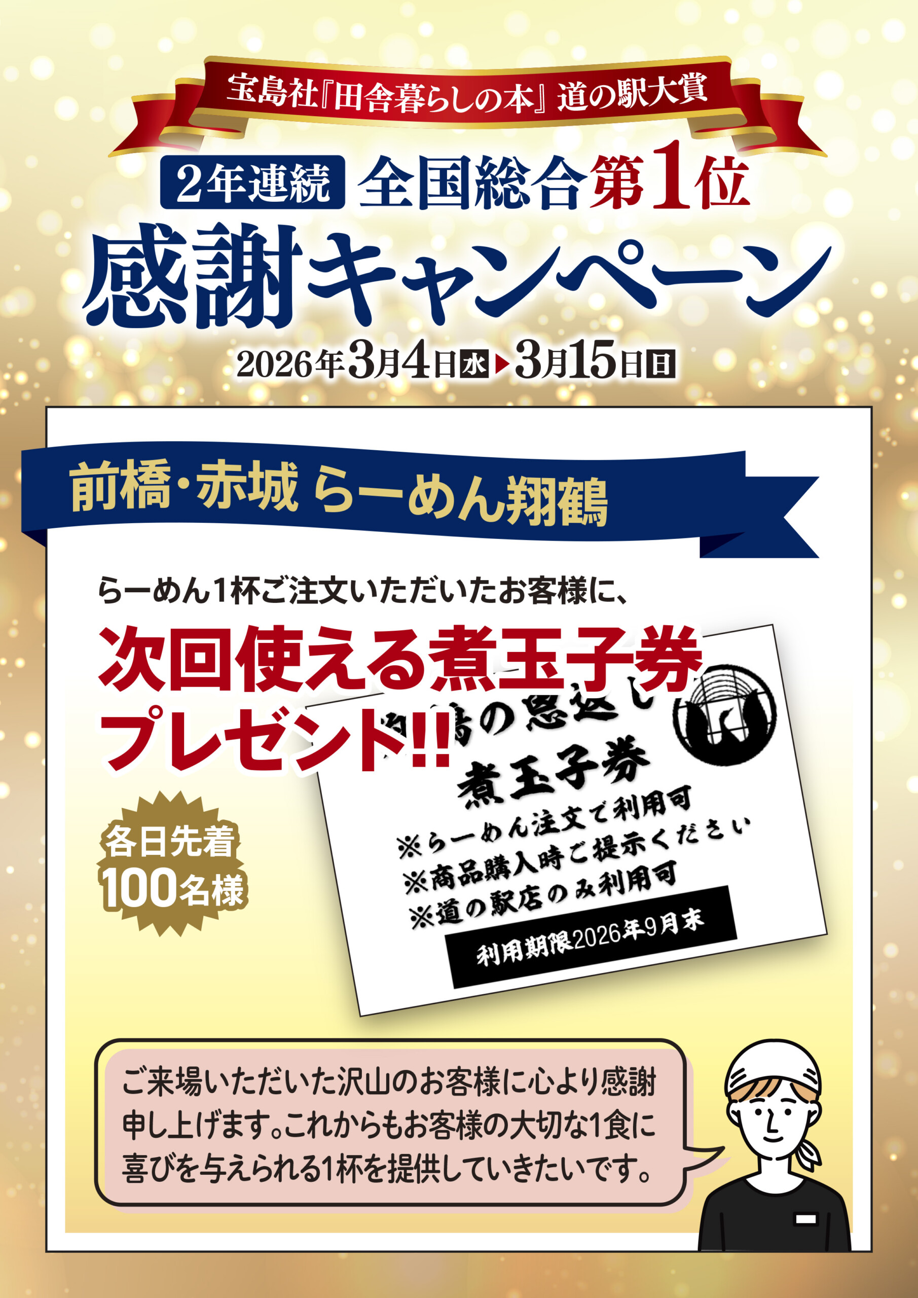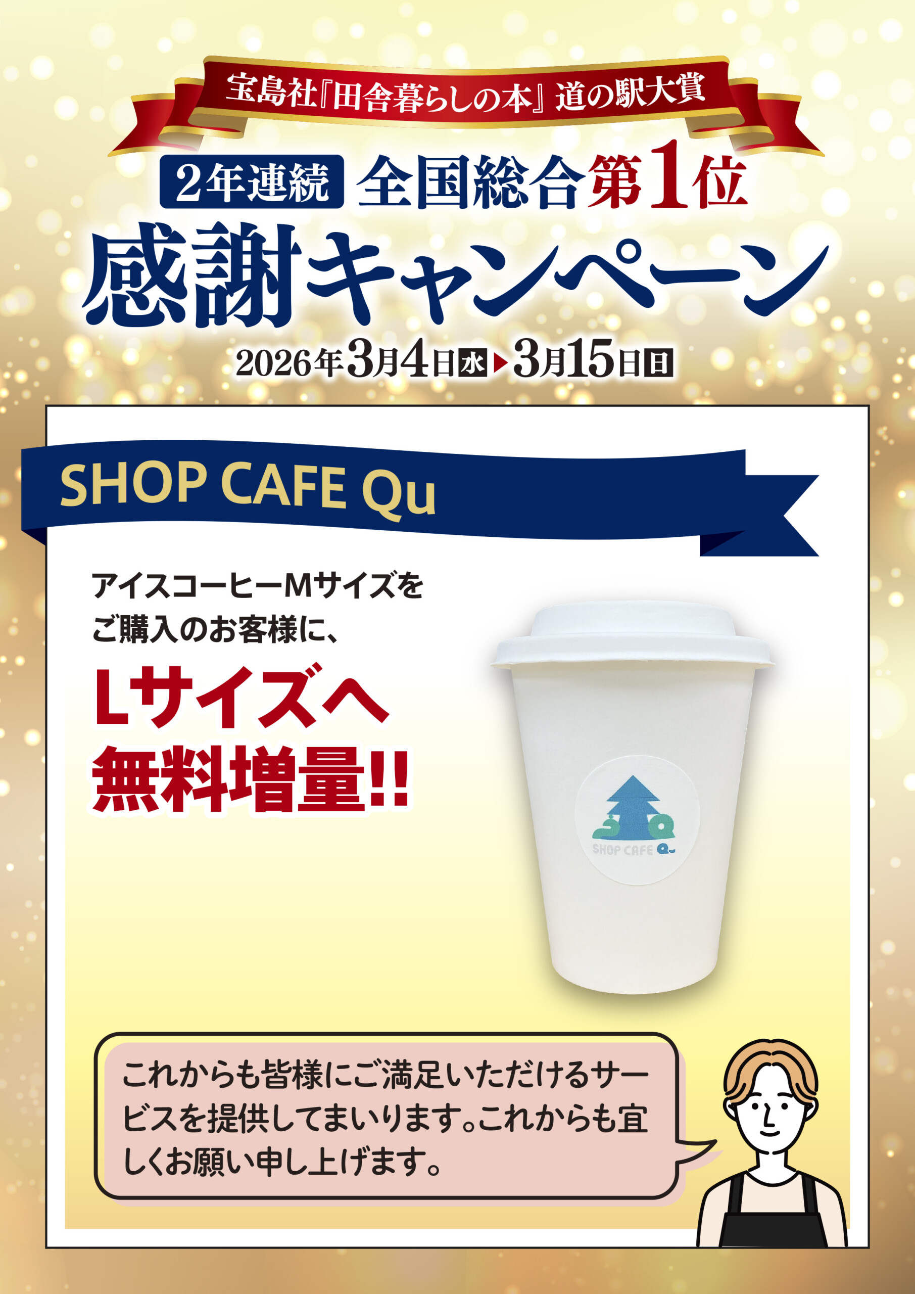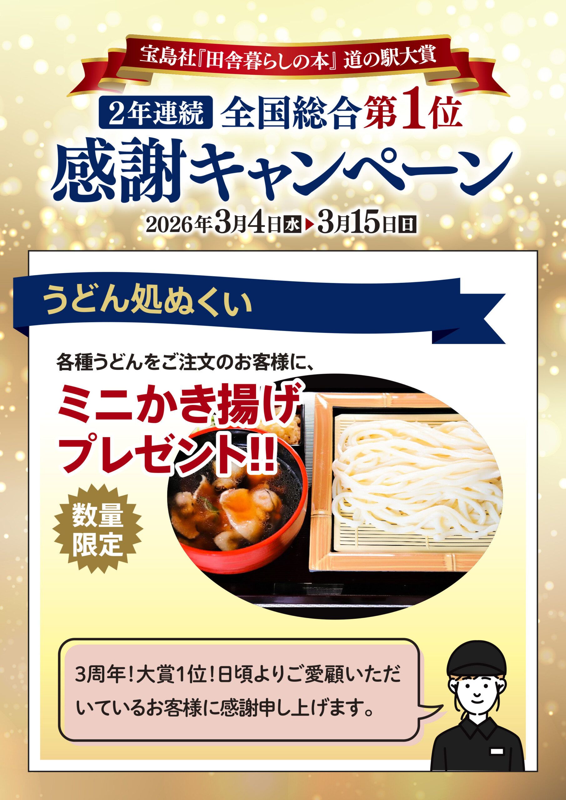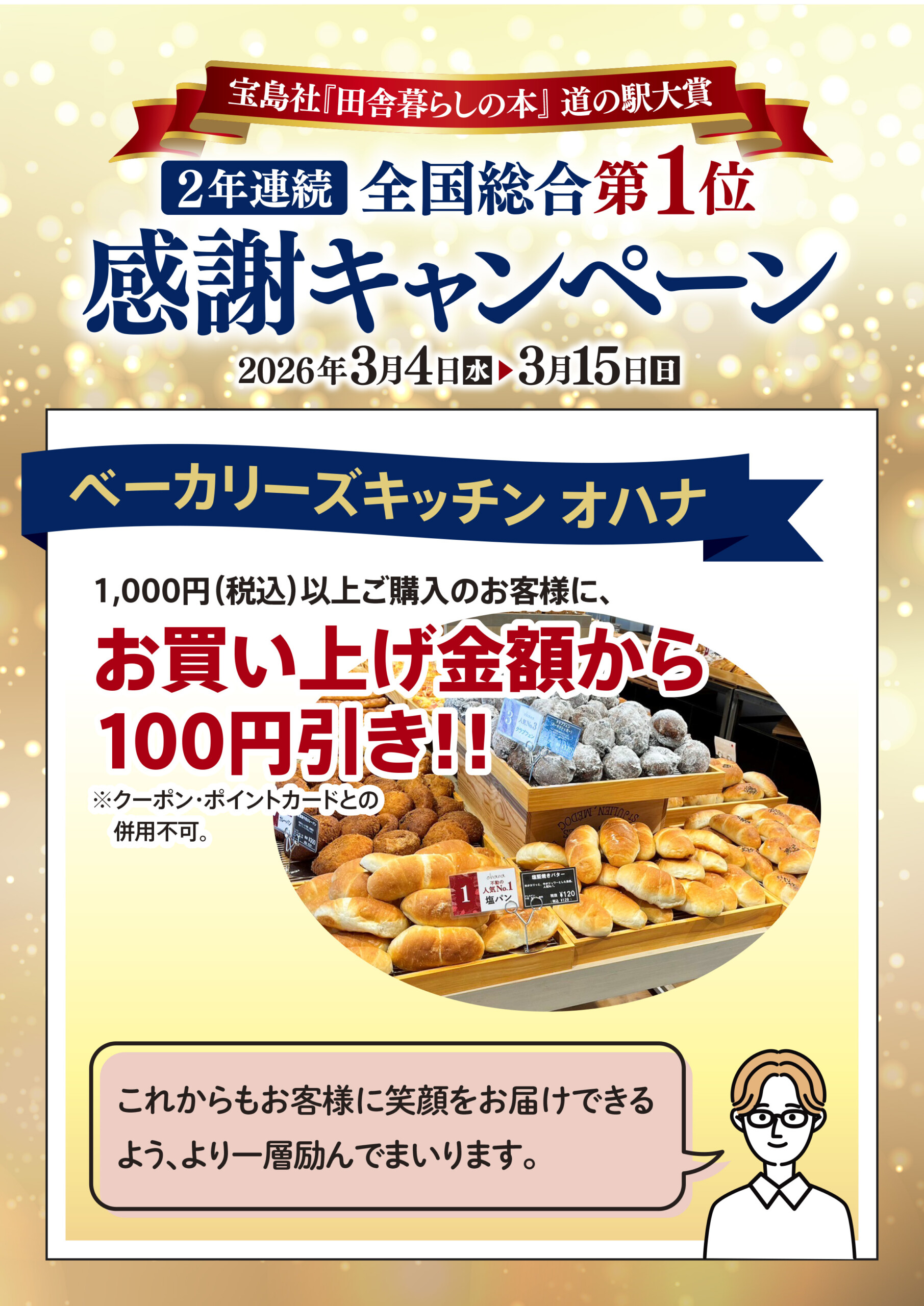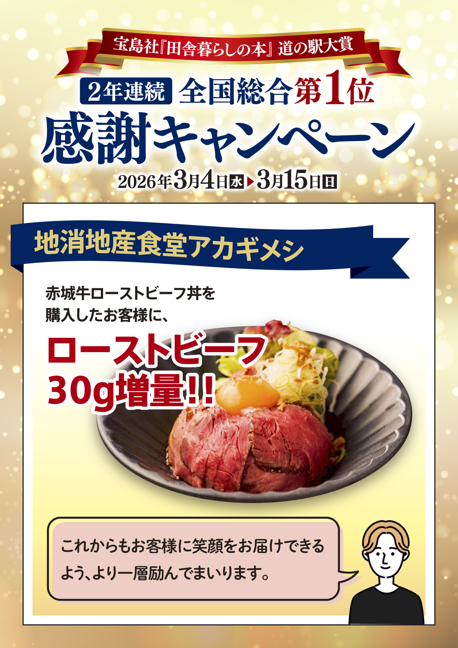 「田舎暮らしの本」道の駅大賞2年連続全国総合1位~感謝キャンペーン~