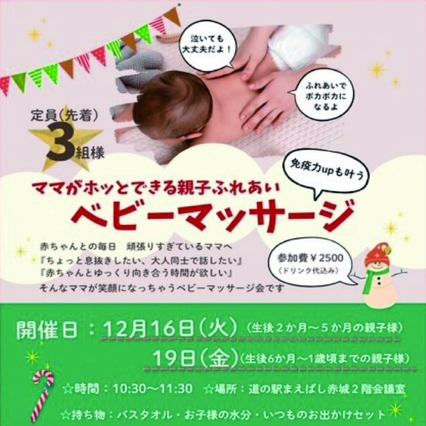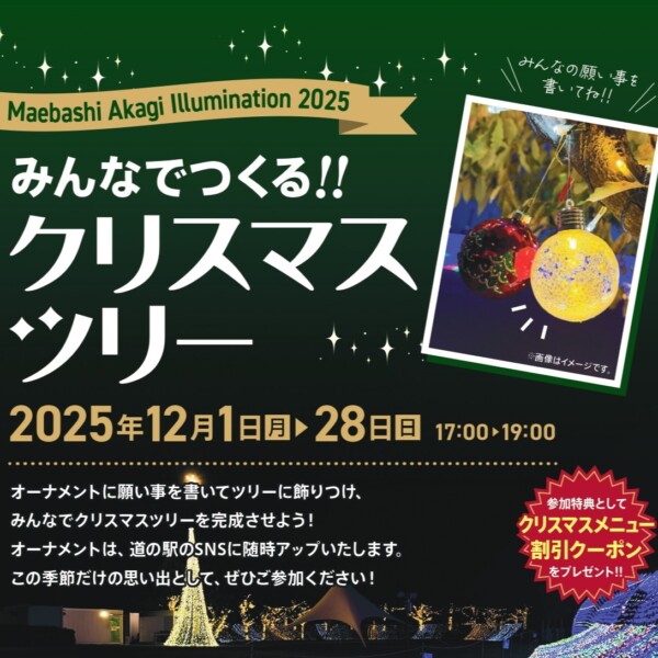 2025/12/01[月] 2025/12/28[日] みんなでつくる!!クリスマスツリー 2025/12/20[土] 2025/12/20[土] 【Bacon】ソーセージ作り&火おこし体験 2025/12/19[金] 2025/12/19[金] ママがホッとできる親子ふれあい ベビーマッサージ【12/19】 2025/12/16[火] 2025/12/16[火] ママがホッとできる親子ふれあい ベビーマッサージ【12/16】 2025/12/13[土] 2025/12/13[土] あかぎ・de・マルシェ【12/13】 2025/12/07[日] 2025/12/07[日] わんちゃん・ねこちゃんの里親譲渡会 2025/12/16[火] 2025/12/17[水] ウクレレ教室in道の駅まえばし赤城・平日クラス【12/16・17】 2025/12/02[火] 2025/12/03[水] ウクレレ教室in道の駅まえばし赤城・平日クラス【12/2・3】 EVENT COMPLETED 2025/11/22[土] 2025/11/25[火] 【4日間限定】華やぐ洋蘭風呂 2025/11/19[水] 2025/12/17[水] 道の駅まえばし赤城 Christmas Party Menu~2025~ 2025/12/01[月] 2026/01/31[土] 【衝撃のボリューム!!】デカ盛りグルメフェア 2025/12/20[土] 2025/12/20[土] 【筆ペンで描く】おのれ筆文字教室 2025/12/06[土] 2025/12/06[土] 【筆ペンで描く】おのれ筆文字教室 2025/12/01[月] 2025/12/25[木] 【冬だけのおいしい贅沢を】クリスマススぺシャルメニュー 2025/12/23[火] 2025/12/23[火] Buggy yoga (バギーヨガ) 【12/23】 EVENT COMPLETED 2025/11/24[月] 2025/11/24[月] 年末ジャンボ宝くじ販売会【11/24】 2025/12/06[土] 2025/12/06[土] 年末ジャンボ宝くじ販売会【12/6】 2026/01/24[土] 2026/01/24[土] ネイル&耳つぼジュエリー体験【1/24】 2025/11/30[日] 2025/11/30[日] 前橋華龍太鼓と和太鼓を楽しもう! in道の駅まえばし赤城 2026/01/17[土] 2026/01/17[土] 第29回ウクレレ教室 in道の駅まえばし赤城