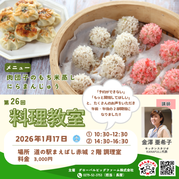 定期イベントREGULAR EVENTS まだ記事はありません。 2024/10/01[火] 2025/12/27[土] 学習指導教室 毎月第1・第3の火曜・水曜 2025/12/16[火] 2025/12/17[水] ウクレレ教室in道の駅まえばし赤城・平日クラス【12/16・17】 毎週水曜日 2025/12/17[水] 2025/12/17[水] プレニーテP.A.クラブーまえばし赤城教室ー 2025/12/18[木] 2025/12/18[木] 第20回 バレエ体操 毎月第3土曜日 2025/12/20[土] 2025/12/20[土] 第28回ウクレレ教室in道の駅まえばし赤城 毎月第1・3土曜日 2025/12/20[土] 2025/12/20[土] 【筆ペンで描く】おのれ筆文字教室 2025/12/21[日] 2025/12/21[日] 親子のためのクリスマスお菓子教室【親子対象】 毎月第4火曜日 2025/12/23[火] 2025/12/23[火] Buggy yoga (バギーヨガ) 【12/23】 2025/12/23[火] 2025/12/23[火] 大人のためのクリスマスお菓子教室【大人対象】 毎週水曜日 2025/12/24[水] 2025/12/24[水] プレニーテP.A.クラブーまえばし赤城教室ー 毎月第3土曜日 2025/12/25[木] 2025/12/25[木] 和豚もちぶた ソーセージ 手作り体験教室 第2・4土曜日 2026/01/10[土] 2026/01/10[土] 第42回 体操教室 みんなで身体を動かそう!【1/10】 毎月第3土曜日 2026/01/17[土] 2026/01/17[土] 第29回ウクレレ教室 in道の駅まえばし赤城 2026/01/23[金] 2026/01/23[金] 大人のための 絵本のお菓子教室 第2・4土曜日 2026/01/24[土] 2026/01/24[土] 第43回 体操教室 みんなで身体を動かそう!【1/24】 2026/01/25[日] 2026/01/25[日] 親子料理教室【親子対象】 毎月第3土曜日 2026/02/21[土] 2026/02/21[土] 第30回 ウクレレ教室 in道の駅まえばし赤城 開催中 2024/10/01[火] 2025/12/27[土] 学習指導教室 開催中 2025/02/01[土] 2025/12/31[水] まえばし赤城の湯 平日キャンペーン 開催中 2025/04/01[火] 2025/12/31[水] 定期イベント開催の募集 開催中 2025/09/07[日] 2025/12/28[日] まえばしバナナ農業体験※開催2日前までにご予約ください 開催中 2025/11/01[土] 2026/02/28[土] Maebashi Akagi Illumination 2025 開催中 2025/11/19[水] 2025/12/17[水] 道の駅まえばし赤城 Christmas Party Menu~2025~ 開催中 2025/12/01[月] 2026/01/31[土] 【衝撃のボリューム!!】デカ盛りグルメフェア 開催中 2025/12/01[月] 2025/12/25[木] 【冬だけのおいしい贅沢を】クリスマススぺシャルメニュー 開催中 2025/12/01[月] 2025/12/31[水] 謎ときラリー×Maebashi Akagi Illumination 2025 開催中 2025/12/01[月] 2025/12/28[日] みんなでつくる!!クリスマスツリー 開催予定 2025/12/15[月] 2025/12/18[木] よりみちMarket ~瀬戸内セレクトマーケット イクミ~【12/15-12/18】 開催予定 2025/12/16[火] 2025/12/17[水] ウクレレ教室in道の駅まえばし赤城・平日クラス【12/16・17】 開催予定 2025/12/17[水] 2025/12/17[水] プレニーテP.A.クラブーまえばし赤城教室ー 開催予定 2025/12/18[木] 2025/12/18[木] 第20回 バレエ体操 開催予定 2025/12/19[金] 2025/12/21[日] よりみちMarket ~シウナススイーツ~ 開催予定 2025/12/20[土] 2025/12/20[土] 【Bacon】ソーセージ作り&火おこし体験 開催予定 2025/12/20[土] 2025/12/20[土] 第28回ウクレレ教室in道の駅まえばし赤城 開催予定 2025/12/20[土] 2025/12/20[土] 【筆ペンで描く】おのれ筆文字教室 開催予定 2025/12/20[土] 2025/12/21[日] 日光さる軍団 太郎次郎一門「猿まわし」が再びやって来る!!【12月】 開催予定 2025/12/21[日] 2025/12/21[日] 親子のためのクリスマスお菓子教室【親子対象】 開催予定 2025/12/21[日] 2025/12/21[日] クリスマスワークショップ【12/21】 開催予定 2025/12/21[日] 2025/12/28[日] よりみちMarket ~JOY PLAN~ 開催予定 2025/12/23[火] 2025/12/23[火] Buggy yoga (バギーヨガ) 【12/23】 開催予定 2025/12/23[火] 2025/12/23[火] 大人のためのクリスマスお菓子教室【大人対象】 開催予定 2025/12/24[水] 2025/12/24[水] プレニーテP.A.クラブーまえばし赤城教室ー 開催予定 2025/12/25[木] 2025/12/25[木] 和豚もちぶた ソーセージ 手作り体験教室 開催予定 2025/12/25[木] 2025/12/25[木] クリスマス DANCE LESSON【12月レッスン】 開催予定 2025/12/25[木] 2025/12/25[木] ころとんイルミネーション撮影会【12/25】 開催予定 2025/12/27[土] 2025/12/27[土] ネイル体験【12/27】 開催予定 2026/01/08[木] 2026/01/12[月] よりみちMarket ~JOY PLAN~ 開催予定 2026/01/10[土] 2026/03/29[日] 赤城山の鍋プラン お外でしゃぶしゃぶ 開催予定 2026/01/10[土] 2026/01/10[土] 第42回 体操教室 みんなで身体を動かそう!【1/10】 開催予定 2026/01/17[土] 2026/01/17[土] 《第26回》和豚もちぶた料理教室 肉団子のもち米蒸し にらまんじゅう 開催予定 2026/01/17[土] 2026/01/17[土] 第29回ウクレレ教室 in道の駅まえばし赤城 開催予定 2026/01/18[日] 2026/01/18[日] ころとんイルミネーション撮影会【1/18】 開催予定 2026/01/23[金] 2026/01/23[金] 大人のための 絵本のお菓子教室 開催予定 2026/01/24[土] 2026/01/24[土] 第43回 体操教室 みんなで身体を動かそう!【1/24】 開催予定 2026/01/24[土] 2026/01/24[土] ネイル&耳つぼジュエリー体験【1/24】 開催予定 2026/01/25[日] 2026/01/25[日] ダンス 初めてさんのフラメンコ体験会 開催予定 2026/01/25[日] 2026/01/25[日] 親子料理教室【親子対象】 開催予定 2026/02/14[土] 2026/02/14[土] ネイル&耳つぼジュエリー体験【2/14】 開催予定 2026/02/20[金] 2026/02/23[月] よりみちMarket ~JOY PLAN~ 開催予定 2026/02/21[土] 2026/02/21[土] 第30回 ウクレレ教室 in道の駅まえばし赤城 開催予定 2026/02/28[土
