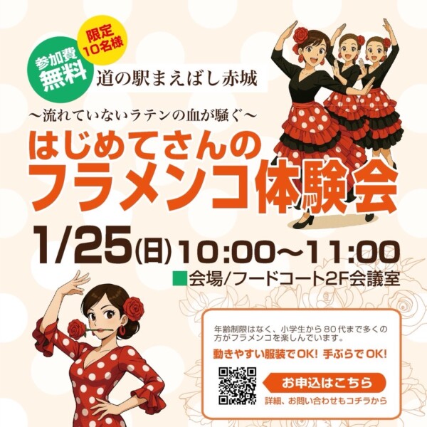 定期イベントREGULAR EVENTS まだ記事はありません。 2024/10/01[火] 2025/12/27[土] 学習指導教室 毎週水曜日 2025/11/26[水] 2025/11/26[水] プレニーテP.A.クラブーまえばし赤城教室ー 2025/11/27[木] 2025/11/27[木] 第19回 バレエ体操 月2回 2025/11/28[金] 2025/11/28[金] 誰でも簡単にDANCE LESSON【11月レッスン】 2025/11/28[金] 2025/11/28[金] 【開催中止】まるでおいも!パンと干し芋ロールパン作り【平日大人レッスン】 毎月第1・第3の火曜・水曜 2025/12/02[火] 2025/12/03[水] ウクレレ教室in道の駅まえばし赤城・平日クラス【12/2・3】 毎週水曜日 2025/12/03[水] 2025/12/03[水] プレニーテP.A.クラブーまえばし赤城教室ー 毎月第1木曜日 2025/12/04[木] 2025/12/04[木] にこにこハイハイレース~12月~ 毎月第1・3土曜日 2025/12/06[土] 2025/12/06[土] 【筆ペンで描く】おのれ筆文字教室 毎週水曜日 2025/12/10[水] 2025/12/10[水] プレニーテP.A.クラブーまえばし赤城教室ー 毎月1回 2025/12/13[土] 2025/12/13[土] アロマワークショップ#9 クリスマスアロマワックスサシェ 第2・4土曜日 2025/12/13[土] 2025/12/13[土] 第41回 体操教室 みんなで身体を動かそう!【12/13】 毎月第1・第3の火曜・水曜 2025/12/16[火] 2025/12/17[水] ウクレレ教室in道の駅まえばし赤城・平日クラス【12/16・17】 毎週水曜日 2025/12/17[水] 2025/12/17[水] プレニーテP.A.クラブーまえばし赤城教室ー 毎週第3水曜日 2025/12/17[水] 2025/12/17[水] 羊毛フェルト教室【12/17】 2025/12/18[木] 2025/12/18[木] 第20回 バレエ体操 毎月第3土曜日 2025/12/20[土] 2025/12/20[土] 第28回ウクレレ教室in道の駅まえばし赤城 毎月第1・3土曜日 2025/12/20[土] 2025/12/20[土] 【筆ペンで描く】おのれ筆文字教室 2025/12/21[日] 2025/12/21[日] 親子のためのクリスマスお菓子教室【親子対象】 毎月第4火曜日 2025/12/23[火] 2025/12/23[火] Buggy yoga (バギーヨガ) 【12/23】 2025/12/23[火] 2025/12/23[火] 大人のためのクリスマスお菓子教室【大人対象】 毎週水曜日 2025/12/24[水] 2025/12/24[水] プレニーテP.A.クラブーまえばし赤城教室ー 毎月第3土曜日 2026/01/17[土] 2026/01/17[土] 第29回ウクレレ教室 in道の駅まえばし赤城 開催中 2024/10/01[火] 2025/12/27[土] 学習指導教室 開催中 2025/02/01[土] 2025/12/31[水] まえばし赤城の湯 平日キャンペーン 開催中 2025/04/01[火] 2025/12/31[水] 定期イベント開催の募集 開催中 2025/09/07[日] 2025/12/28[日] まえばしバナナ農業体験※開催2日前までにご予約ください 開催中 2025/11/01[土] 2026/02/28[土] Maebashi Akagi Illumination 2025 開催中 2025/11/19[水] 2025/12/17[水] 道の駅まえばし赤城 Christmas Party Menu~2025~ 開催中 2025/11/25[火] 2025/12/01[月] よりみちMarket ~瀬戸内セレクトマーケット イクミ~【11/25-12/1】 開催中 2025/12/01[月] 2026/01/31[土] 【衝撃のボリューム!!】デカ盛りグルメフェア 開催中 2025/12/01[月] 2025/12/25[木] 【冬だけのおいしい贅沢を】クリスマススぺシャルメニュー 開催中 2025/12/01[月] 2025/12/31[水] 謎ときラリー×Maebashi Akagi Illumination 2025 開催中 2025/12/01[月] 2025/12/28[日] みんなでつくる!!クリスマスツリー 開催予定 2025/12/02[火] 2025/12/04[木] よりみちMarket ~ウッドセラピーのお店~ 開催予定 2025/12/02[火] 2025/12/03[水] ウクレレ教室in道の駅まえばし赤城・平日クラス【12/2・3】 開催予定 2025/12/03[水] 2025/12/03[水] プレニーテP.A.クラブーまえばし赤城教室ー 開催予定 2025/12/04[木] 2025/12/04[木] にこにこハイハイレース~12月~ 開催予定 2025/12/05[金] 2025/12/11[木] よりみちMarket ~瀬戸内セレクトマーケット イクミ~【12/5-12/11】 開催予定 2025/12/06[土] 2025/12/06[土] 年末ジャンボ宝くじ販売会【12/6】 開催予定 2025/12/06[土] 2025/12/06[土] 【筆ペンで描く】おのれ筆文字教室 開催予定 2025/12/07[日] 2025/12/07[日] わんちゃん・ねこちゃんの里親譲渡会 開催予定 2025/12/10[水] 2025/12/10[水] プレニーテP.A.クラブーまえばし赤城教室ー 開催予定 2025/12/12[金] 2025/12/14[日] よりみちMarket ~38 Products~ 開催予定 2025/12/12[金] 2025/12/14[日] よりみちMarket~ななほし~ 開催予定 2025/12/13[土] 2025/12/13[土] アロマワークショップ#9 クリスマスアロマワックスサシェ 開催予定 2025/12/13[土] 2025/12/13[土] 第41回 体操教室 みんなで身体を動かそう!【12/13】 開催予定 2025/12/13[土] 2025/12/13[土] あかぎ・de・マルシェ【12/13】 開催予定 2025/12/15[月] 2025/12/18[木] よりみちMarket ~瀬戸内セレクトマーケット イクミ~【12/15-12/18】 開催予定 2025/12/16[火] 2025/12/16[火] ママがホッとできる親子ふれあい ベビーマッサージ【12/16】 開催予定 2025/12/16[火] 2025/12/17[水] ウクレレ教室in道の駅まえばし赤城・平日クラス【12/16・17】 開催予定 2025/12/17[水] 2025/12/17[水] プレニーテP.A.クラブーまえばし赤城教室ー 開催予定 2025/12/17[水] 2025/12/17[水] 羊毛フェルト教室【12/17】 開催予定 2025/12/18[木] 2025/12/18[木] 第20回 バレエ体操 開催予定 2025/12/19[金] 2025/12/19[金] ママがホッとできる親子ふれあい ベビーマッサージ【12/19】 開催予定 2025/12/20[土] 2025/12/20[土] 【Bacon】ソーセージ作り&火おこし体験 開催予定 2025/12/20[土] 2025/12/20[土] 第28回ウクレレ教室in道の駅まえばし赤城 開催予定 2025/12/20[土] 2025/12/20[土] 【筆ペンで描く】おのれ筆文字教室 開催予定 2025/12/21[日] 2025/1
