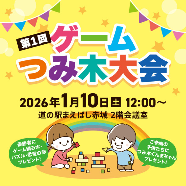 定期イベントREGULAR EVENTS まだ記事はありません。 2024/10/01[火] 2025/12/27[土] 学習指導教室 2025/12/21[日] 2025/12/21[日] 親子のためのクリスマスお菓子教室【親子対象】 毎月第4火曜日 2025/12/23[火] 2025/12/23[火] Buggy yoga (バギーヨガ) 【12/23】 毎週水曜日 2025/12/24[水] 2025/12/24[水] プレニーテP.A.クラブーまえばし赤城教室ー 毎月第1・第3の火曜・水曜 2026/01/06[火] 2026/01/07[水] ウクレレ教室in道の駅まえばし赤城・平日クラス【1/6・7】 第2・4土曜日 2026/01/10[土] 2026/01/10[土] 第42回 体操教室 みんなで身体を動かそう!【1/10】 毎週水曜日 2026/01/14[水] 2026/01/14[水] プレニーテP.A.クラブーまえばし赤城教室ー 各月1回 2026/01/17[土] 2026/01/17[土] 《第26回》和豚もちぶた料理教室 肉団子のもち米蒸し にらまんじゅう 毎月第3土曜日 2026/01/17[土] 2026/01/17[土] 第29回ウクレレ教室 in道の駅まえばし赤城 毎月第1・第3の火曜・水曜 2026/01/20[火] 2026/01/21[水] ウクレレ教室in道の駅まえばし赤城・平日クラス【1/20・21】 毎週水曜日 2026/01/21[水] 2026/01/21[水] プレニーテP.A.クラブーまえばし赤城教室ー 2026/01/22[木] 2026/01/22[木] 第21回 バレエ体操 2026/01/23[金] 2026/01/23[金] 大人のための 絵本のお菓子教室 第2・4土曜日 2026/01/24[土] 2026/01/24[土] 第43回 体操教室 みんなで身体を動かそう!【1/24】 2026/01/25[日] 2026/01/25[日] 親子料理教室【親子対象】 毎月第4火曜日 2026/01/27[火] 2026/01/27[火] Buggy yoga (バギーヨガ) 【1/27】 毎週水曜日 2026/01/28[水] 2026/01/28[水] プレニーテP.A.クラブーまえばし赤城教室ー 第2・4土曜日 2026/02/14[土] 2026/02/14[土] 第44回 体操教室 みんなで身体を動かそう!【2/14】 毎月第3土曜日 2026/02/21[土] 2026/02/21[土] 第30回 ウクレレ教室 in道の駅まえばし赤城 第2・4土曜日 2026/02/28[土] 2026/02/28[土] 第45回 体操教室 みんなで身体を動かそう!【2/28】 開催中 2025/02/01[土] 2025/12/31[水] まえばし赤城の湯 平日キャンペーン 開催中 2025/04/01[火] 2025/12/31[水] 定期イベント開催の募集 開催中 2025/11/01[土] 2026/02/28[土] Maebashi Akagi Illumination 2025 開催中 2025/12/01[月] 2026/01/31[土] 【衝撃のボリューム!!】デカ盛りグルメフェア 開催中 2025/12/01[月] 2025/12/31[水] 謎ときラリー×Maebashi Akagi Illumination 2025 開催中 2025/12/27[土] 2025/12/31[水] 【年末5日間限定】ゆず湯×風船「ゆずぽよ湯」 開催予定 2026/01/03[土] 2026/01/06[火] よりみちMarket ~瀬戸内セレクトマーケット イクミ~【1/3~1/6】 開催予定 2026/01/03[土] 2026/01/03[土] 【筆ペンで描く】おのれ筆文字教室 開催予定 2026/01/03[土] 2026/01/05[月] 道の駅まえばし赤城 2026年初売りフェア 開催予定 2026/01/04[日] 2026/01/04[日] Akagi FarmLife 新春イベント 開催予定 2026/01/06[火] 2026/01/07[水] ウクレレ教室in道の駅まえばし赤城・平日クラス【1/6・7】 開催予定 2026/01/08[木] 2026/01/12[月] よりみちMarket ~JOY PLAN~ 開催予定 2026/01/10[土] 2026/01/10[土] あかぎ・de・マルシェ【1/10】 開催予定 2026/01/10[土] 2026/01/10[土] 第1回 ゲームつみ木大会 開催予定 2026/01/10[土] 2026/03/29[日] 赤城山の鍋プラン お外でしゃぶしゃぶ 開催予定 2026/01/10[土] 2026/01/10[土] 第42回 体操教室 みんなで身体を動かそう!【1/10】 開催予定 2026/01/10[土] 2026/01/10[土] 福島県PRイベント「ふくしま常磐ものふるまい」 開催予定 2026/01/13[火] 2026/01/20[火] よりみちMarket ~瀬戸内セレクトマーケット イクミ~【1/13~1/20】 開催予定 2026/01/13[火] 2026/01/13[火] 理学療法士と一緒にボディメイク体験 ストレッチ&運動教室 開催予定 2026/01/14[水] 2026/01/14[水] プレニーテP.A.クラブーまえばし赤城教室ー 開催予定 2026/01/17[土] 2026/02/28[土] まえばしバナナ農業体験2026 ※1/2より受付開始 開催予定 2026/01/17[土] 2026/01/17[土] 《第26回》和豚もちぶた料理教室 肉団子のもち米蒸し にらまんじゅう 開催予定 2026/01/17[土] 2026/01/17[土] 【筆ペンで描く】おのれ筆文字教室 開催予定 2026/01/17[土] 2026/01/17[土] 第29回ウクレレ教室 in道の駅まえばし赤城 開催予定 2026/01/18[日] 2026/01/18[日] ころとんイルミネーション撮影会【1/18】 開催予定 2026/01/20[火] 2026/01/21[水] ウクレレ教室in道の駅まえばし赤城・平日クラス【1/20・21】 開催予定 2026/01/21[水] 2026/01/21[水] プレニーテP.A.クラブーまえばし赤城教室ー 開催予定 2026/01/22[木] 2026/01/22[木] 第21回 バレエ体操 開催予定 2026/01/22[木] 2026/01/22[木] SS DANCE SCHOOL ダンスレッスン 開催予定 2026/01/23[金] 2026/01/25[日] よりみちMarket ~38 Products~【1/23~1/25】 開催予定 2026/01/23[金] 2026/01/23[金] 大人のための 絵本のお菓子教室 開催予定 2026/01/23[金] 2026/01/23[金] ベビーマッサージ【1/23】 開催予定 2026/01/24[土] 2026/01/25[日] あかぎ・de・マルシェ【1/24-25】 開催予定 2026/01/24[土] 2026/01/24[土] 第43回 体操教室 みんなで身体を動かそう!【1/24】 開催予定 2026/01/24[土] 2026/01/24[土] ネイル&耳つぼジュエリー体験【1/24】 開催予定 2026/01/25[日] 2026/01/25[日] ダンス 初めてさんのフラメンコ体験会 開催予定 2026/01/25[日] 2026/01/25[日] 親子料理教室【親子対象】 開催予定 2026/01/27[火] 2026/01/27[火] Buggy yoga (バギーヨガ) 【1/27】 開催予定 2026/01/28[水] 2026/01/28[水] プレニーテP.A.クラブーまえばし赤城教室ー 開