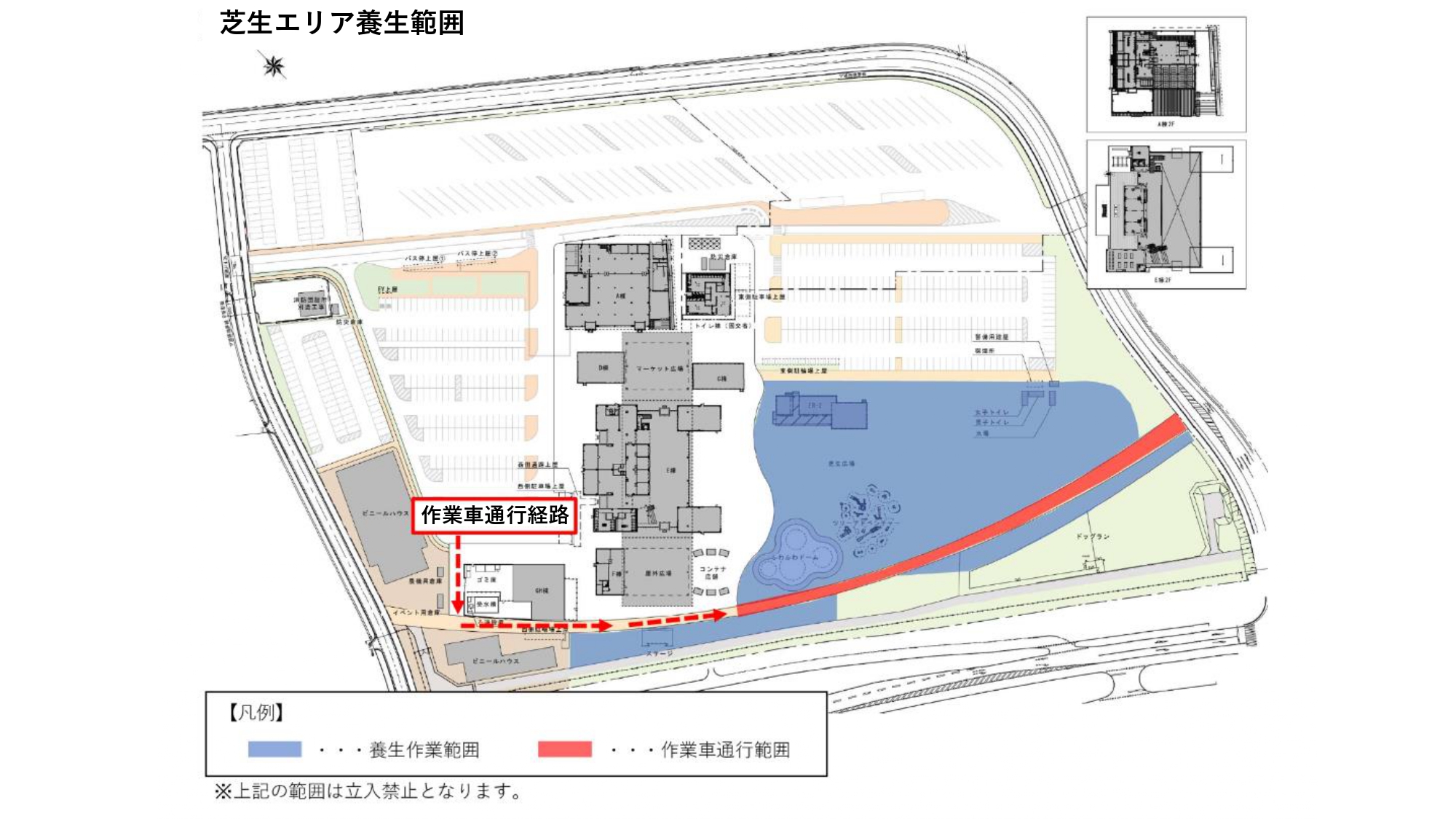 9月29日(月)午前4時~翌9月30日(火)午前9時の間、芝生エリア維持管理に伴う養生作業を実施いたします。