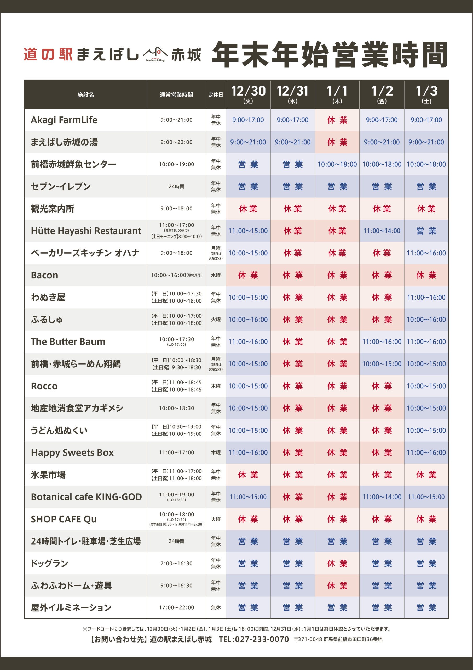 いつも道の駅まえばし赤城をご利用いただき、ありがとうございます。